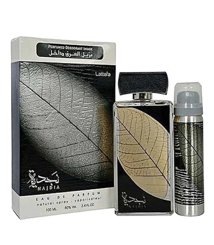 Najdia by Lattafa – 2 Piece Set – For Men – Eau de Parfum – Spray + 1.7 Ounce Deodorant Spray – Natural Spray Vaporisateur – Long Lasting Fragrance – Ideal Gift – 100mL